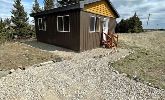 The cabin is about 1/4 mile off of Highway 2, accessed via a gravel road, and only 2 miles to East Glacier Park!