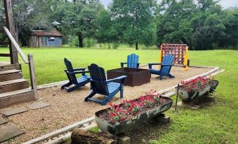 This was the perfect property for our fun little getaway with our 5 year old granddaughter. We had so much fun & she absolutely loved everything about Live Oak Landing. The 3 tree swings, outdoor games, soaker pool, hot dogs & smores cooked on the firepit, walking in the creek, king bed & outdoor shower in her room, as well as plenty of room to run & play to name just a few. It's also located just around the corner from all the area attractions including Dinosaur Valley State Park. Memories made & we cant wait to return!