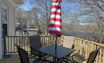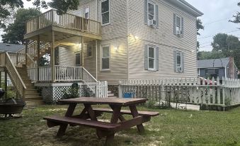 Ideal for up to 5 people, this apartment is located on the second floor of a two-unit building. It has three bedrooms, one full bathroom, a living room and a kitchen with a dining table. It has a nice fully fenced yard and a driveway with space to park up to 4 cars. The apartment is fully furnished and has wi-fi and laundry. Located on a cute cul-de-sac from a nice neighborhood just 1/2 mile from the beach and 50 minute drive to Boston. The main bedroom is located in the attic so there is an extra flight of stairs to get there, and the laundry is in the basement. There is a central heat system for the winter and window AC units for the summer. The attic bedroom has a mini-split AC/heater system. FYI there is another apartment occupied by other tenants on the floor below and there may be ambient noise that travel through the walls (both ways).About pets:No pets allowed, service animals permitted.About checkOut:Check out before 11:00 AM.About children:Children allowed: ages 0-17.Bring Your Own Crib, Travel Cot, Bath, High Chair.About customRules:No commercial activity; no crypto mining/web host; no equipment; no commercial video/photo; no commercial/bulk cooking; no therapy sessions/treatment..No pets allowed ($250 cleaning fee). No candles/open flame objects. No smoking ($250 cleaning fee). No illegal substance use or possession.,Don't bring your own linens. Do not rearrange furniture. Children not allowed in basement. Quiet time 9pm-7am. Do not obstruct/adjust exterior cameras.About checkIn:Check in after 3:00 PM.About smoking:Smoking is not permitted.About minBookingAge:Minimum age to rent: 30.About events:No events allowed.