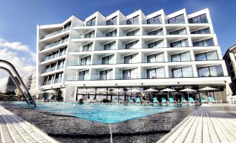 The hotel is right on the beach and has a lovely sandy beach with lots of sunbeds. The sea is shallow and sandy, very suitable for swimming with children. The hotel has a swimming pool. The hotel is clean, beautiful, and luxurious. The rooms are cleaned every day. Bathrobes, slippers, shampoos are all available and replenished every day. The restaurant on the fifth floor has an amazing view of the sea. In the morning, you can enjoy breakfast while looking at the stunning sea, and in the evening – a colourful beautiful sunset. In addition to all the beauty that you see around, the sea and the interior of the restaurant, you also get pleasure from food. Because they cook in this restaurant with a soul. The food is very tasty and varied. There’s meat, fish, seafood, fruits, vegetables, and delicious desserts. I don’t usually eat cakes, but here I couldn’t resist them! Thank you to all the staff – everyone was friendly and helpful. You made our stay unforgettable. I definitely recommend this hotel!