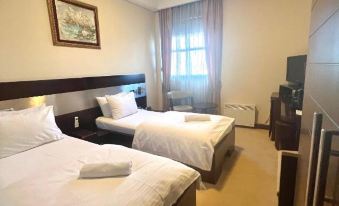 Great hotel with a restaurants below that serves delicious food. The receptionists are very helpful and welcoming. The rooms are clean and spacious. There is also a pool open to guests and the hotel is a 3 minute drive to the airport which is extremely convenient. Definitely recommend staying here if you are in Podgorica.