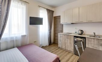 The apart-hotel is located in the Proletarian district of Rostov-on-Don, near the N. Ostrovsky Park of Culture and Recreation. The hotel offers 23 fully equipped rooms. Each room is equipped as a separate apartment with its own bedroom, kitchen and bathroom. It offers internet access throughout the hotel. There is a closed parking for cars in the courtyard of the hotel.