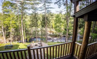 Most of our family, friends, and guests are immediately drawn to the riverfront with a nice easy walk along the river shore, enjoying the many diverse sections of the river. In and along the river, you and the entire family can enjoy several falls, natural pools, Islands, rock outcrops, swimming holes, tree bridges, and panoramic views from the covered porch. Don't miss out on an opportunity to savor the sights and sounds of the river next to a campfire at our brick fire pit directly overlooking the Independence river. Also, the lodge is located on a private & dead-end road providing guests with great privacy.