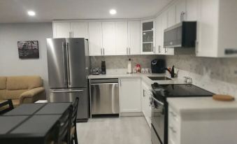 The suite has a separate entrance and parking spot. Each bedrooms has a queen size bed with high quality linens. It also has a beautiful quartz counter top kitchen, a private laundry, a shining 4-piece bathroom and a cozy living room with TV.