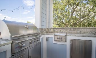 We hosted friends and family in this beautiful beachfront home for a 2 week stay. It had a very well equipped kitchen and outdoor grill area. 4 of the bedrooms have en-suite bathrooms and the 5th has a bathroom immediately adjacent to it. The primary suite is large and luxurious. The household supplies (paper products) were more than adequate for our needs. We’ve already booked a return stay for this fall.