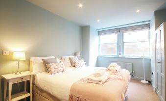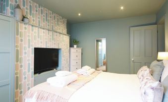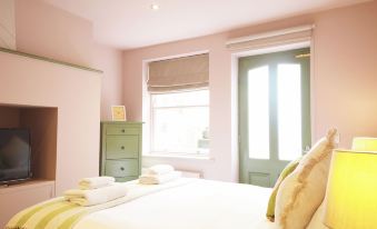A beautiful Victorian conversion, 2 bedroom apartment with period features spread over the ground and lower ground floor. Attractive, bright and contemporary living room with Smart TV and period fireplace. Through to a bright and spacious kitchen diner, with fridge freezer, full sized oven and electric ceramic hob, dishwasher, microwave and washing machine with separate dryer. Down the stairs to the lower ground floor where there are 2 good sized double bedrooms, both with Smart TVs, one has a king bed and the other with the option of king or twin beds. House bathroom with bath and shower over. There is also a useful storage room in the basement.