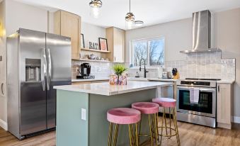 Located in a peaceful neighborhood, this spacious home offers everything you need for a relaxing stay. The main level features three cozy bedrooms—two with king-sized beds and one with a queen-sized bed—along with a bright full bathroom equipped with a tub/shower combo. Whether you're working remotely or catching up on emails, the dedicated workspace is ready to meet your needs. The living room provides a comfortable space to unwind, while the modern, fully equipped kitchen makes meal preparation a breeze.