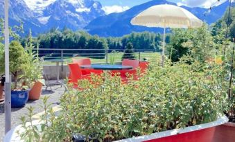 The hotel was really cozy and had a warm athmosphere. It is not targeted at families as such, but our children enjoyed just as much. There is a swing nearby, a little forest area just next to it to go to look for bunnies and the Seilbahn station with a walking distance to reach the "Kugelweg" and "Muggistutzi" - wonderful hiking routes for children. As Finns we really appreciated the sauna on the roof (with the view!) after a long day of hiking. The staff is friendly and make you feel home! What we particularly appreciated is the restaurant. Most swiss restaurants seem to have the same menu, and in summer heat fondue / rösti is just too much. It was nice to have a little bit of variety and Asian vibes for change. The breakfast with local tastes was also delicious!