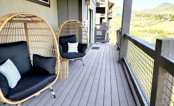 This professionally appointed 4-bedroom/4-bath townhome boasts stunning views of the Jordanelle Reservoir from all three floors. It's a short 3-min drive to Deer Valley East and the Jordanelle Gondola as well as the Jordanelle State Park Marina and a 15-min drive to Park City Resort and Main Street. Enjoy an endless array of outdoor activities in the summer and world-class ski resorts in the winter. Soak in the outdoor jacuzzi tub after a long day or in one of the two indoor jetted tubs. Making meals is a breeze with this gourmet kitchen that is fully equipped with culinary tools including an air fryer, crock pot, rice cooker, Keurig Duo with coffee grinder, and a gas stove/oven with griddle. The two master bedrooms on separate floors make this a perfect getaway for two families or extended families. Bedding begins with super soft stretch sheets by Purple and an option of Purple Harmony pillows or down alternative pillows for those who like a softer pillow. As an added bonus, the family can spread out in the media room and watch movies, play games, and make popcorn. The media room now includes a Murphy cabinet bed which can sleep 2 people. The laundry room makes it easy to do the midweek loads. Park in the spacious 2-car garage where you can store all your sports gear. We truly hope you enjoy this mountain retreat!