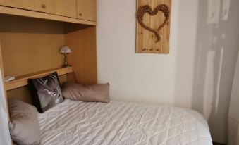 September Entrance, living-sleeping-room with TV, high-quality bed cupboard, fold-out sofa, new night storage stove, separate open kitchen fully equipped, spacious bathroom with shower.