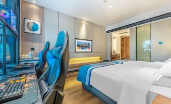 住宿體驗也完全超出預期!房間比圖片還大,電競區和休息區分得很清,純棉床品軟到躺下就不想起,浴室乾濕分離超乾淨,連吹風機都是戴森的,細節太戳人。晚上打累了,冰箱裏免費的可樂、薯片隨便拿,還送了熱乎的夜宵泡麪,貼心到感動!隔音也超讚,關上門完全聽不到隔壁的吶喊,既能放肆開黑,又能安心補覺。