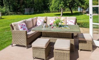 Set in 2 acres of drive, garden and paddock with a shallow stream running through. We have a11m X 5m heated outdoor pool available for guest use.