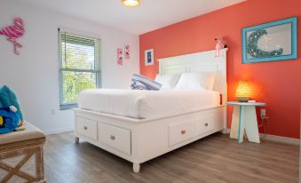 The living room comes complete with a plush L shaped sleeper sofa and a 55in flat screen streaming TV with a DVD player for family movie night/game night. The spacious lake view master bedroom suite has a king-sized mattress, 50’ flat screen streaming TV, and a spacious walk-in closet complete with a full-size washer and dryer for your convenience. The en-suite bathroom has a lovely soaking tub/shower combo making it perfect for sandy kids after a long day at the beach.