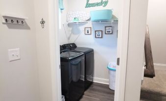 The kitchen is made for cooking with everything from muffin tins to a blender to make your stay like home.