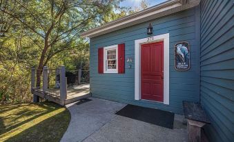 The cottage includes 1 spacious bedroom with a King-sized bed. There is a bathroom with a large garden tub and shower combo. The living room has views over the creek and a gas fireplace with a Smart TV for streaming your favorite channels. The kitchen is spacious and offers everything you need to eat in if you choose. Fiber optic internet service has been added so that guests have the best internet option in town. We would love to host you at the Blue Heron Cottage.