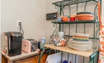 You will not find a better equipped and stocked kitchen in Hot Springs! Fully-equipped kitchen with all of the necessary essentials to make those away-from-home home cooked meals. Furnishings include: refrigerator, stove, microwave, dishwasher, Keurig coffee maker, pots and baking sheets, cooking utensils, crock pot, electric skillet, mixing bowls, measuring cups and spoons along with cookbooks in the back master on the bookshelf.