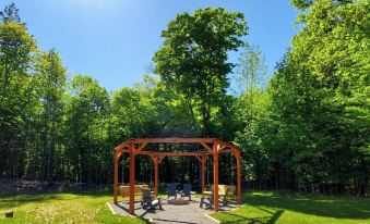 - Pergola with fire pit and Muskoka chairs