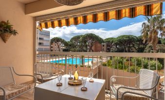 Residence "Le Zodiaque II", 5 storeys, surrounded by trees. In the resort de Hyères, 300 m from the sea, 600 m from the beach. For shared use: swimming pool fenced (10 x 8 m, depth 130 - 210 cm, seasonal availability: 15.May. - 30.Sep.). Outdoor shower. In the complex: lift. Public parking on the road. Shop 750 m, grocery, shopping centre 5.9 km, restaurant, bar 750 m, bakery 750 m, café 750 m, bus stop 200 m, railway station "de Hyères" 4.7 km, sandy beach "de Ceinturon" 600 m, swimming bay 3 km. Sports harbour 650 m. Nearby attractions: Magic World 1.9 km, Kiddy Parc 2.3 km, Parc Olbius Riquier 4.6 km. Please note: the keys‘ handover takes place by the agency INTERHOME in Hyères sur le port. Airfield close by. 3-room apartment 59 m2 on 2nd floor. Spacious and bright, renovated in 2024, very beautiful furnishings: living/dining room with 1 double sofabed (140 cm, length 200 cm), TV (flat screen). Exit to the balcony. 1 room with 1 french bed (160 cm, length 200 cm). Exit to the balcony. Interconnecting room with 1 bed (90 cm, length 190 cm). Open kitchen (oven, dishwasher, 4 induction hot plates, toaster, kettle, freezer, electric coffee machine). Shower, sep. WC. Electric heating, boiler (100 litres). Balcony 11 m2. Balcony furniture. Beautiful view of the swimming pool. Facilities: washing machine. Internet (WiFi, free). Please note: TV only FR. Smoke alarm.