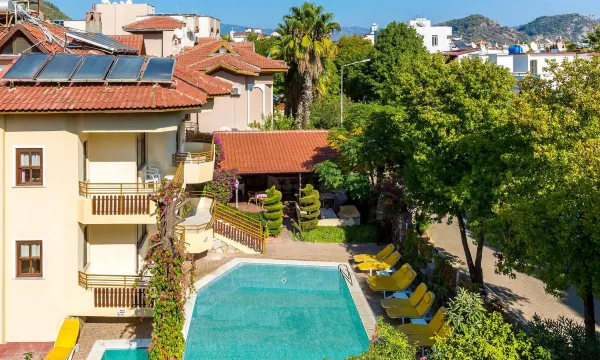Absolutely awful. Having been to Içmeler for many years, these were the were apartments I’ve ever stayed in. The owners were rude and disrespectful, The “pool bar” never opened and, instead, the bar fridge was full of the family’s leftovers. Elderly relatives were wheeled out each day to “watch” the pool and, despite me smiling at them and saying hello (using my best Turkish!), I never got one smile in return. The pool is overrun by relatives of the owner. Never felt so uncomfortable in my life. I am very polite and respectful but even then I couldn’t get an ounce of decency out of these people. Apartments were outdated, pool full of owners family, no pool bar, horrible atmosphere, overpriced for what it is, clearly dislike the British, beds uncomfortable and you have to shower in the toilet! Oh, and never any hot water - every shower was cold! Avoid at all costs.