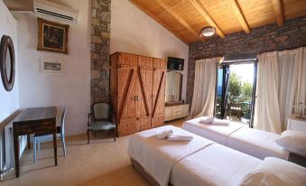 We loved our room. There was peace and quiet in the beautiful area surrounding the hotel. The bed was very comfortable and there was air conditioning and a roof fan to protect us from the summer heat. The owners and the staff were very kind accommodating and helpful throughout our stay! There was also a small kitchen in our room and we could prepare our meals and snacks. There was a nespresso coffee machine for our first coffee. Also our room had two balconies that we enjoyed a lot as one offered shade in the morning and the other in the afternoon. Everything was very clean. We loved it and will be coming back!