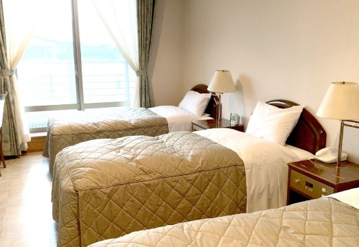 The hotel lobby has a big window with chairs allowing guests to see the bridge and there is a souvenir shop as well. We stayed in a triple room and we didn’t feel crowded. They gave us room with great view that are as good as the more expensive onsen hotel nearby, which cost much more. It’s door is locked between 23:00-06:00. The hotel is next to a big bike rental shop, and there’s free parking outside. Need to write to them to make reservation but their response is quick. They also helped to store our luggage which had made our logistic much simpler. This hotel was the best value for money in our whole trip in Shikoku.