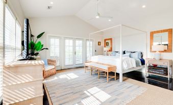 The second floor includes 3 bedrooms. Upstairs, the master bedroom features a four-poster king bed, en-suite bathroom with double sinks and an updated shower with bench. The master bedroom opens up to its own private covered porch with spectacular views of the ocean, 2 sofa lounge and 3 club chairs. The two upstairs bedrooms offer queen beds with a partial ocean view. There’s a full bathroom located between these two rooms. You’ll conveniently find a laundry closet with washer and dryer in the upstairs hallway that also offers a steamer and iron. All bedrooms include TV’s and wireless internet service provided.