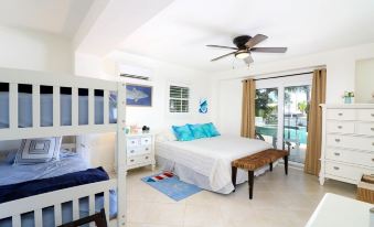 The home is truly the ultimate in Tropical living. Downstairs you will find a gourmet Kitchen Aid kitchen with all the accessories including a Keurig coffee maker and all the kitchen utensils and accessories that you need to provide gourmet meals including a great selection of quality spices. A modern smart TV with Netflix and a Sonos stereo system will suit even the most discriminating visitors. A 2015 King size bed and two very nice bunk beds provide sleeping comfort for up to 4 guests in the lower level. The living room opens up to the tropical outdoor environment through 2 sets of hurricane impact sliding glass doors. Upstairs you will find a gorgeous 2 bedroom suite with Acacia hardwood flooring. Smart TV's with Netflix and Sonos is also available upstairs and downstairs. Another set of expansive sliding glass doors open up to the veranda where you can sit and soak in what is going on outside or wave at the boats going by. The upstairs master boasts a 2015 Luxury King size bed with sliding doors to the second floor balcony will have you waking up to beautiful sunrises every morning while sitting in the custom lifeguard chairs. The second bedroom has 2 Twin XL beds which are big enough for adults to sleep in comfort.