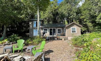The house has two bedrooms and 1.5 bathrooms, as well as a kitchen and dining area, and a large deck. In the summer, use the outdoor shower to rinse off after a dip in the lake. A grill is available during warm weather for the perfect cookout, followed by a bonfire in the outdoor fire pit. There is free high-speed internet and smart TV, self check-in, and free parking. Coffee and tea are provided for all guests. This house is a perfect spot no matter your itinerary: stay home in the cozy cottage, or use it as your home base as you travel and sightsee throughout the area.