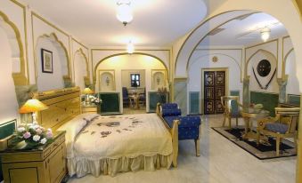 Think grandeur to the highest degree. 24 carat gold fittings- stucco- brocades- mirror work- hand- painted frescoes- massive crystal chandeliers- antiques and priceless artifacts- this is a monumental palace with an immense wow factor. Museum suites have been created giving the Raj Palace the honor of being the first palace hotel with such accommodations in the world. The Raj Palace is a Small Luxury Hotels of the World property.