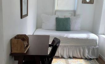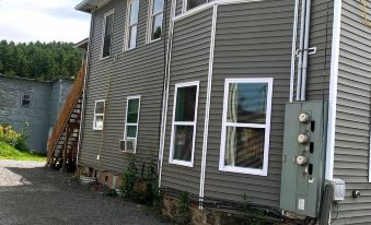 Centrally, located between Lake Placid & Plattsburgh, NY in the heart of Au Sable Forks on the main road to Wilmington (White Face), & Lake Placid. We’re directly on the East branch of the Au Sable River & walking distance to many things. Including, a shuttle to Lake Placid/Whiteface. Unit 1 is located on the first floor and has 2 beautifully decorated bedrooms & one office. Bedroom 1 has a double bed. The second bedroom is slightly smaller & also has a full size bed. The third room has a desk & daybed. The large living room/dining room features a comfortable sofa and love seat with a flat screen smart TV over a non working fireplace. Complimentary, coffee & tea is also available on the coffee bar. All units have an assigned off street parking space for 1 vehicle. Each unit has shared access to the yard, which faces the river and features outdoor seating and a fire pit. Firewood, will be provided for your convenience. From the yard you can take the short path down the bank to access the river. This building was originally constructed in the 1900’s & still has some of it’s original charm but has been recently updated.
