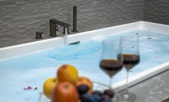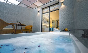 房間非常好,酒店離停車場很近大概一二百米,步行很輕鬆到達,酒店位置和標誌也很醒目,到達後工作人員很熱情,跟我們説這個房型有一樓和三樓可以選擇,並且帶我們參觀了這兩個房間,果斷選擇了有露台和浴缸的一樓,環境很漂亮,空調也很給力。樓下的貓貓和狗狗是可以抱抱摸摸的,貓貓是招財和進寶,狗狗叫貝拉,都超級超級可愛。酒店人員也很熱情,還推薦了周圍好吃的菜和避雷的館子(這裏就不細説了嘻嘻),一切都超級好。(唯一覺得可以改進的是酒店浴室水龍頭的水有些小,位置不可調節也比較高,水留下的時候就有點涼了,有點難洗暖和)