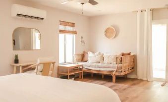 The Mustard Door is a spacious 3 bedroom and 2 bathroom home tucked in the Friendly Hills Joshua Tree neighborhood.