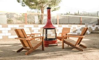 + the custom adirondack chairs around the fire pit chiminea for hanging out on chilly nights or for stargazing on warm summer nights