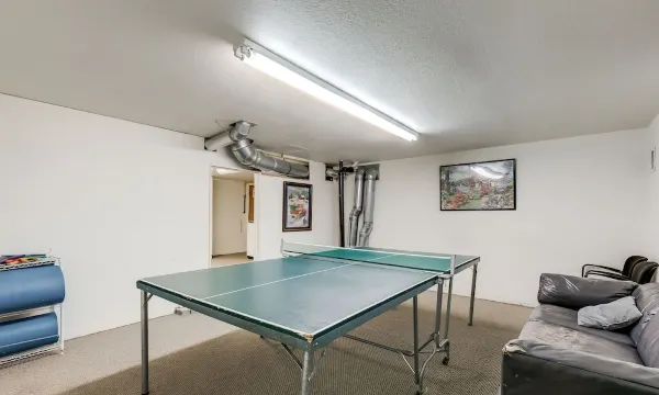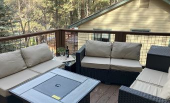Description of the Chalet: Our completely remodeled 2-story cabin is 3000 sq. ft. including 600 sq feet of finished basement that we have turned into a game room and laundry facilities. The chalet has 4 bedrooms with beds for 9 which includes 2 king bedrooms, 1 queen bedroom and 1 room with a double lower bunk and a twin upper bunk. There is a convertible sofa / Bed in the downstairs living room that sleeps 2. There are also an air mattress, couches and leather recliner chair can be used for sleeping. The game room downstairs has a futon, that can be used for an extra bed. The chalet is beautifully decorated in warm earthy tones. Upstairs: master suite with new Tuft & Needle king bed, cable TV, dresser/closet and private spa bathroom with his/hers sinks and a jacuzzi tub/shower. Across the hall from the master is the kids' room with bunk beds, 2 dressers and a closet. The bunk beds could sleep 5 as the top is a twin and the bottom is a double, and the slide out is also a double. There is a full-service bathroom upstairs with a shower/sink/toilet. We also have a service room with a full-size chest freezer for extra food storage along with wire shelving for extra pantry items and storage for wet skis and clothes hangers! The living area has a large suede U shaped couch, 55' “Smart TV” (so you can stream!) HDTV flat screen wall mounted TV, cable with plenty of stations, Sony surround sound and Blu Ray DVD player with a selection of DVD's and I pod player. We also have a floor to ceiling gas fireplace! The dining area has a round oak table that comfortably seats 6 and 3 more can sit at the island with suede bar stools. The chef's kitchen is fully equipped with service for 12+ and features a gas range/oven/dishwasher/microwave/wine bar and refrigerator/freezer. The most welcoming feature about the upstairs is large end to end bay windows wrapping around the living/dining room with a full size walk out deck. The deck has table that seats 6 and a 4 -person lounge and firepit, there is a fabulous view of the SF Peaks! Downstairs: The 3rd bedroom has a queen bed, dresser and closet. The 4th bedroom has a queen bed, dresser, end table and closet. There is a full-size living area downstairs with a 46' flat screen HDTV with cable, a DVD player, 2 leather couches, a recliner/rocker, a Precor elliptical machine, a convertible sofa couch, and a chair/ottoman. There is a bathroom downstairs with a sink and toilet. Just off the living area is another full-size deck with a table and 4 chairs. It and steps down into the large fenced in tree lot yard! Lots of room for the kids and dogs, to run and play and pickup pinecones! Also, downstairs is the laundry room with a washer and dryer, a game room with a ping pong table, a futon and 5 chairs.