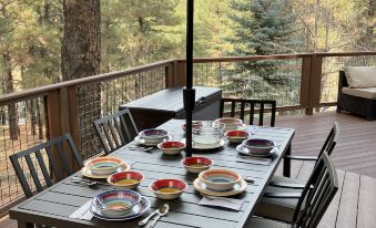Want to visit the beautiful red rocks of Sedona? We are only 30 minutes away! Prefer to stay close? Historical Flagstaff has many multi-cultural restaurants including local options and chains, great shopping and art galleries. Friday nights in downtown Flagstaff is the art walk with local musicians playing as you breeze about the stores. Family movies are also shown downtown, and you can pack dinner and eat/watch on the grass! Lowell’s Observatory and Meteor Creator are near Flagstaff. During the winter months there is downhill skiing at our famous Snowbowl Ski Resort. From spring to fall, take a ride to Sedona's Red Rock Canyon and Oak Creek Canyon. While there, hop on a Pink Jeep Tour or Hot Air Balloon ride over some of the most beautiful and unique scenery in our country. During the summer, pack a cooler and enjoy a day at Slide Rock State Park where kids slide along the rocks and adults’ sunbath or catch up on their reading on the many levels of flat rocks along the creek.About pets:Pets allowed: limit 3 total.There is a $50. per pet fee. please pick up after.About checkOut:Check out before 11:00 AM.About children:Children allowed: ages 0-17.Not for children under 2. upper deck!.About customRules:No fires!!.Keep noise down .,Keep pets off the beds, and furniture..About checkIn:Check in after 4:00 PM.About smoking:Smoking is not permitted.About minBookingAge:Minimum age to rent: 21.About events:No events allowed.