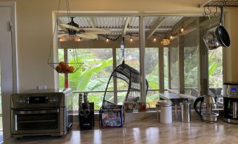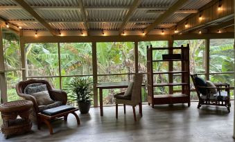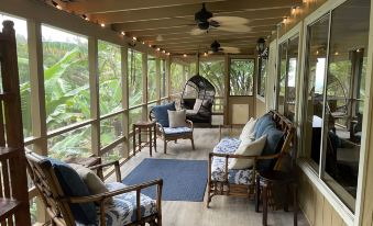 Aloha and welcome to our private banana tree house. Experience a peaceful, unique cottage with spectacular ocean & lush tropical valley views. The cottage floats above and overlooks an operating organic banana orchard. Gated in a 20 acre estate, with majestic royal palms & fruit trees galore. Wrap around screened in lanai & open deck allows guests to soak in gentle trade winds. Enjoy heavenly stars at night & wake to a chorus of Hawaiian song birds serenading you to your new adventurous day.About pets:Pets allowed: less than 20 lbs per pet (limit 2 pets total).About checkOut:Check out before 10:00 AM.About children:Children allowed: ages 0-17.About checkIn:Check in after 4:00 PM.About smoking:Smoking is not permitted.About events:No events allowed.