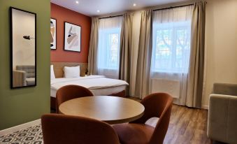 Guests can stay in Standard, Standard Superior and Studio rooms. Each room has a comfortable bed, air conditioning, satellite TV, refrigerator, tea and coffee making facilities, desk, wardrobe, private bathroom with toiletries and slippers.