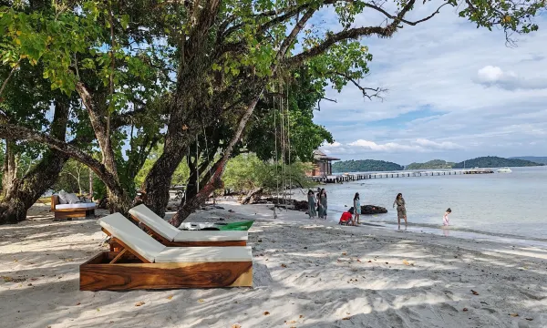 Full Moon, nice place to stay and the only one island 🏝 resort in Cambodia with very unque designs. The villas on the water are great and night time we experienced the waive of water in dreams too. Pool is nice but just cannot see sea view and beach side with so nice white sands. Many activities you can do here, for us love just relaxing by beach side. This is first private island resort you can book to experience.