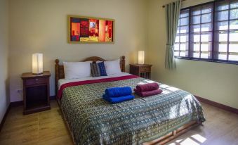 The two spacious en-suite Bedrooms with air conditioning, king size beds and elegant teak furniture.
