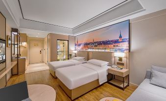 Traveling to the hotel is easy with Kunshan Railway Station located approximately 5km away and Shanghai Hongqiao International Airport roughly 48km away. Transportation around the city is also convenient, with Xiuyi Metro Station within walking distance. This hotel is located near many of Kunshan's attractions including Kunshan Library, ShangYe BuXingJie DaShiJie and Children's Park.