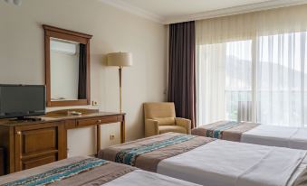 Ne yazık ki çalışanları oldukça yetersiz hizmet, anlayış seviyesinde. Odalarda terlik bile yok istendiğinde veriyor muyuz diye birbirlerine sorup zorla alabildik. Odaya geldiğimiz de çok açtık tost istedik paralı ama dediler elbette biliyoruz sorun değil yeter ki çok acil olsun dedik. 30 dk sonra getirdiler odadan çıkmamız lazım dedik tost ekmeği yoktu ondan geç kaldık dediler. Keşke söyleseniz iptal ederdik çıkmamız lazım dememize rağmen ödemesini aldılar. Odalar çok temiz değil.
