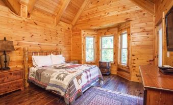 Riverfront Premium Cabin is a crowd-pleaser on the Tellico River. This beautiful 3-bedroom, 3 and half-bath log cabin can sleep up to 10 people. Large cabin with a massive 25-foot ceiling. on the Tellico River. Directly on the river with spectacular views of cascading rapids and a 300-foot rock face in the background. Enormous private deck that hangs out over the river adds to those views of the Tellico River. Located In the mountains but 2 miles from the small historical town of Tellico Plains and very easy to find. There is cell service also! It is on the Cherohala Skyway so perfect for Motorcyclists and Fisherman.About pets:No pets allowed.About checkOut:Check out before 11:00 AM.About children:Children allowed: ages 0-17.About checkIn:Check in after 4:00 PM.About smoking:Smoking is not permitted.About minBookingAge:Minimum age to rent: 21.About events:Events allowed: family gatherings, birthday parties, weddings.Maximum event attendees: 10.