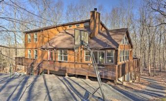 Welcome to The Hidden Owl — your perfect Poconos escape! Tucked away on over 2 private acres in the heart of Masthope, this spacious 5-bedroom, 3-bath luxury log cabin is designed for unforgettable getaways with family & friends. Comfortably sleeping up to 14 guests, this 3,800+ sq ft home offers cozy gathering spaces, fun-filled game & media rooms, and peaceful corners to relax and recharge.