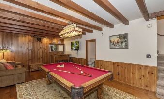 This was the prior home of the Fred Claire family, General Manager of the Dodgers. The Larchmont Lodge comes equipped with all the modern amenities you would expect on a vacation including a tree house style deck, luxury hotel quality linens and bedding. Other Amenities include newly updated kitchen, built in Smart TV’s, Propane BBQ, natural gas fire place in living room. This property is perfect for family, couples, kids and pet’s. The top floor has 2 bedrooms with a Queen bed and Cal King. There is also a bathroom with tub and shower. The main floor had open living room/dining area, with forest view deck and BBQ, kitchen and bathroom. Beautiful show stopping stone Fireplace to keep you warm. The Lower level is a Bedroom/Game room w/bathroom, private deck, twin bed, queen sofa bed and pool/ping pong table. The city allows up to 2 cars parked at our home. About pets:Pets allowed: dogs (limit 2 total).About checkOut:Check out before 11:00 AM.About children:Children allowed: ages 3-17.About customRules:Max 2 cars. San Bernardino County. Fines are levied for non compliance: https://----------------.About checkIn:Check in after 4:00 PM.About smoking:Smoking is not permitted.About minBookingAge:Minimum age to rent: 25.About events:No events allowed.