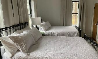 * The Garden Suite - 2 double beds, bench, and blackout curtains