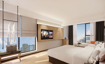 這家酒店真心值得推薦!一進房間就被簡約又不失質感的設計吸引,窗邊的休閑角落太戳人了,窩在那裡看看窗外的高樓綠樹,超治癒。智能電視的多屏互動很實用,追劇投屏超方便。床鋪柔軟舒適,一覺睡到自然醒。從房間佈局到設施細節,都能感受到滿滿的用心,住在這裏既温馨又有格調,是一次超棒的住宿體驗,強烈安利給大家,下次來還選這家!