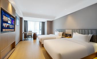 [Product Features]: The hotel has a stylish and simple decoration style, and is a fully intelligent business and leisure hotel. It has various room types such as Business Intelligent Big Bed Room, City View Intelligent Big Bed Room, City View Intelligent Twin Room, Far View Light Luxury Big Bed Room, Deluxe Mahjong Big Bed Room, Parent Child Family Room, etc. Each room is equipped with Xilinmen latex mattress and fresh and elegant shower fragrance, providing high-quality sleep for travelers; The room is equipped with high-end toiletries, slippers, toilet pads and other disposable items for your use, and unlimited access to mineral water is provided; The hotel provides meticulous and enthusiastic service, complete supporting facilities, and creates a comfortable, warm, and convenient travel home for you.