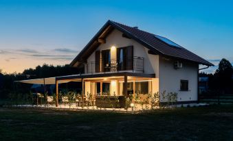 Lič 4 km from Fužine: Single-family house "Mountain House Volta 1", 2 storeys, built in 2024. 800 m from the centre of Lič, in a quiet, sunny position, 27 km from the sea, 4 km from the lake, in the countryside. For shared use: property 3'000 m2 with lawn and plants. Private: hot tub. In the house: internet access, sauna, central heating system. Motor access to the house (500 m via unmade road). Parking (for 2 cars) at the house on the premises. Shop 700 m, restaurant 4.2 km, bus stop 4 km, railway station 4 km, pebble beach 27 km, concrete beach 27 km. Walking paths from the house 500 m, cycle lane 550 m, ice rink 17 km. Nearby attractions: Cave Vrelo 6 km. Well-known lakes can easily be reached: Bajer 3 km. Please note: Additional accommodations can be booked. Property ref. HR2938.304.1 is situated on the same property. 3-room house 120 m2 on 2 levels. Living/dining room with satellite TV and air conditioning. Exit to the terrace. Open kitchen (oven, dishwasher, 4 ceramic glass hob hotplates, toaster, kettle, freezer, electric coffee machine). Shower/WC. Top floor: 1 room with sloping ceilings, ceiling height 140 - 230 cm, without wardrobe with 1 french bed (180 cm, length 200 cm). Exit to the balcony. 1 room with sloping ceilings, ceiling height 140 - 230 cm, without wardrobe with 2 beds (90 cm, length 200 cm). Exit to the balcony. Bath/WC, hydro massage bath with corner bath. Balcony 6 m2, terrace 60 m2 partly roofed. Terrace furniture, balcony furniture, electric barbecue, deck chairs. View of the forest. Facilities: baby cot, hair dryer. Internet (WiFi, free). Please note: non-smoking house. Maximum 1 pet/ dog allowed.