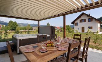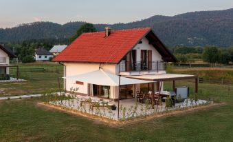 Lič 4 km from Fužine: Single-family house "Mountain House Volta 2", 2 storeys, built in 2024. 800 m from the centre of Lič, in a quiet, sunny position, 27 km from the sea, 4 km from the lake, in the countryside. For shared use: property 3'000 m2 with lawn and plants. Private: hot tub. In the house: internet access, sauna, central heating system. Motor access to the house (500 m via unmade road). Parking (for 2 cars) at the house on the premises. Shop 700 m, restaurant 4.2 km, bus stop 4 km, railway station 4 km, pebble beach 27 km, concrete beach 27 km. Walking paths from the house 500 m, cycle lane 550 m, ice rink 17 km. Nearby attractions: Cave Vrelo 6 km. Well-known lakes can easily be reached: Bajer 3 km. Please note: Additional accommodations can be booked. Property ref. HR2938.303.1 is situated on the same property. 3-room house 120 m2 on 2 levels. Living/dining room with satellite TV and air conditioning. Exit to the terrace. Open kitchen (oven, dishwasher, 4 ceramic glass hob hotplates, toaster, kettle, freezer, electric coffee machine). Shower/WC. Top floor: 1 room with sloping ceilings, ceiling height 140 - 230 cm, without wardrobe with 1 french bed (180 cm, length 200 cm). Exit to the balcony. 1 room with sloping ceilings, ceiling height 140 - 230 cm, without wardrobe with 2 beds (90 cm, length 200 cm). Exit to the balcony. Bath/WC, hydro massage bath with corner bath. Balcony 6 m2, terrace 60 m2 partly roofed. Terrace furniture, balcony furniture, electric barbecue, deck chairs. View of the forest. Facilities: baby cot, hair dryer. Internet (WiFi, free). Please note: non-smoking house. Maximum 1 pet/ dog allowed.
