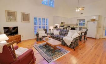 The location for this rental was perfect. My father and I stayed here for a 4 day fishing trip and enjoyed it immensely. House was very clean and had great AC, but kitchen can be scarce so if you decide to do a lot of cooking I would bring what you need. The woods surrounding the property are gorgeous, I always enjoyed the walk down to the dock. I would note its a bit steep and some of the steps are loose so be careful. The dock is covered, all aluminum, and has power avalaible which made it perfect for our fishing boat, just mind the orb weevers. I reccomend this house to anyone doing a fishing trip on the Savannah, lots of great fishing right out in the cove, and very little boat traffic.